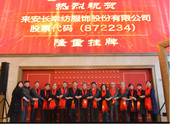 2017年5月公司進行股份制改造,成立來安長幸紡服飾股份有限公司,同年11月8日在全國中小企業股份轉讓系統成功掛牌。